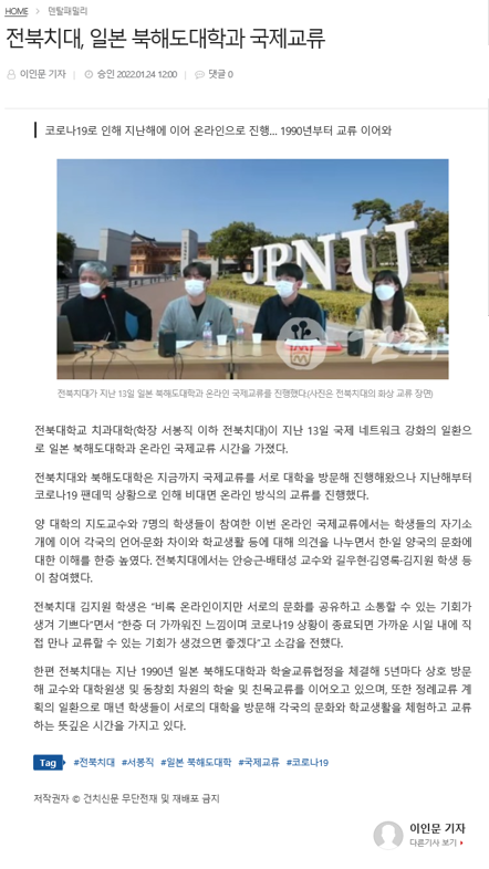 [기사] 전북치대, 일본 북해도대학과 국제교류 -건치신문 22.01.24